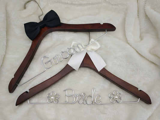 iEventStar 2 in 1 Set Quality Thick Wood Wedding Hangers Brown Bridal Dress Hanger Groom Hanger Wedding Gifts Handmade