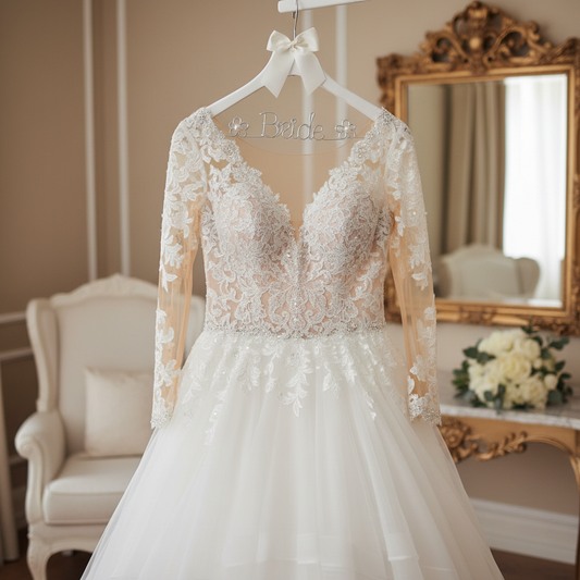 iEventStar Quality Handmade Thick Wood Wedding Hanger Brown Bridal Dress Hangers White Wedding Gift